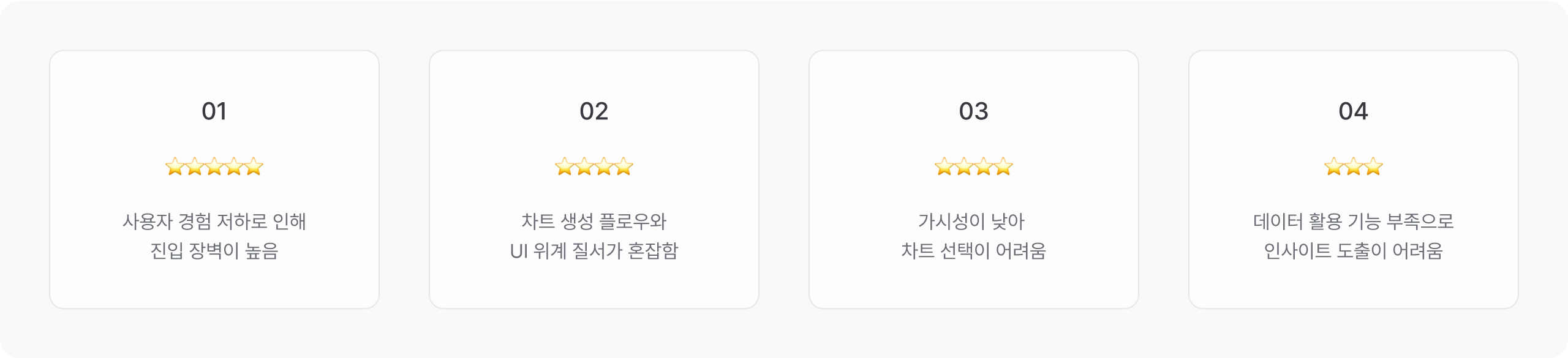 - 사용자는 어떤 차트를 선택해야 할지, 어떤 데이터로 구성해야할지 몰라 어려움을 겪었습니다.