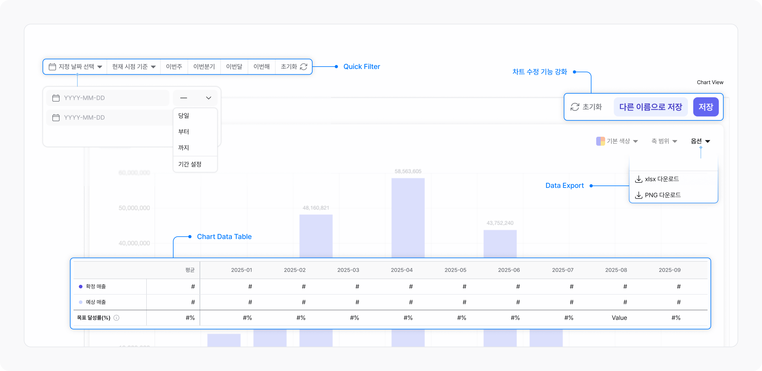- 차트 데이터 테이블 추가 : 시각화된 그래프와 함께 수치 확인 가능