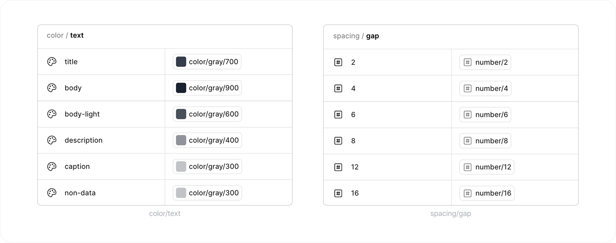 먼저 유사한 UI 요소에서 동일한 컬러가 사용될 수 있도록 텍스트 유형 기준의 Color Token을 정의했습니다.