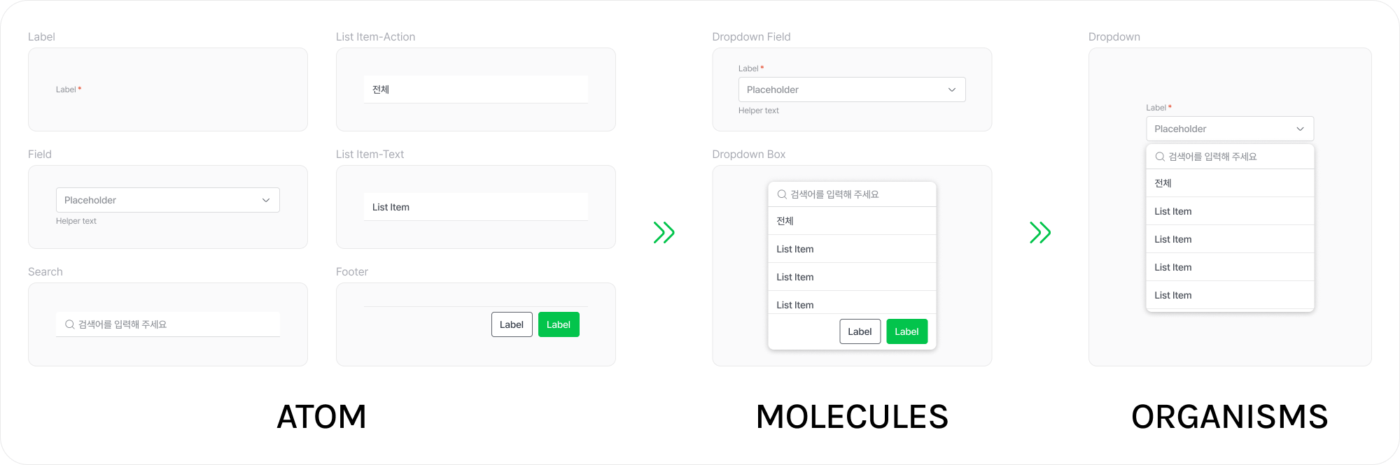 하지만 Atomic Design 기준에서는 이 요소들이 Molecule인지 Organism인지 판단하기 애매한 경우가 많습니다.